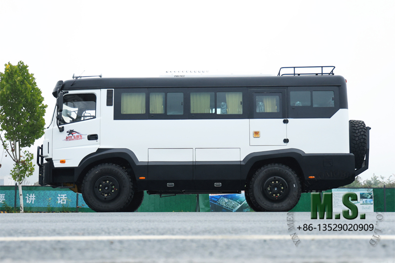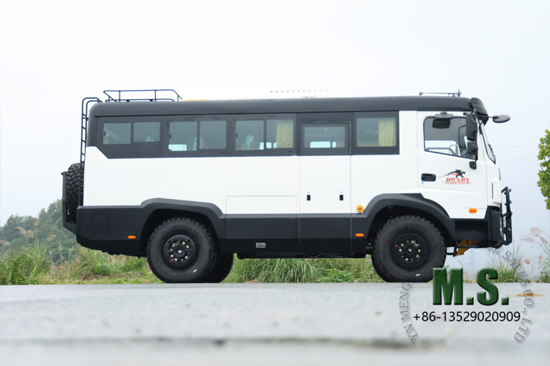 The Dongfeng 4x4 off-road passenger vehicle is built on a front military truck chassis, with all components manufactured using modern processes. It can be fully customized, such as with a side emergency door and an automatic spare tire rack. The engine uses a Cummins mechanical fuel injection engine, which is very durable, easy to maintain, and suitable for operations in forests, wilderness, mines, or any off-road or harsh conditions. This model has performed well in the African and Myanmar markets.